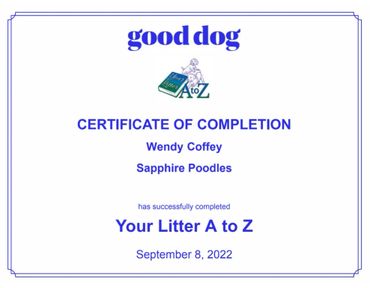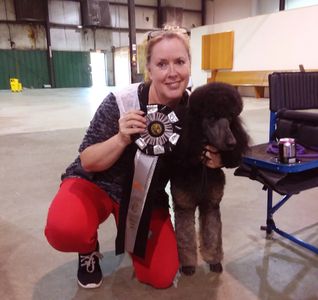 Our Standard Poodles have titles in Conformation, Weight Pull, Barn hunt, tricks, fast cat, UKC nose work and AKC scent work, lure coursing, precision lure coursing, rally, canine good citizen, Therapy dog, ukc spot, Versatility in Poodles certified, and AKC achiever dog certified.